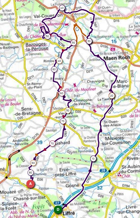 Le circuit du groupe 1 fait 82 km pour un D+ de 858 m (D+ moyen de 1.0 %). vitesse moyenne groupe 1 entre 28 et 30 km/h.